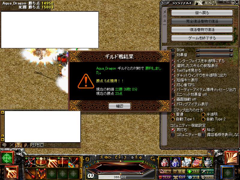 こんばんわ。フェンベルクです。日曜日は昼間におきて、RSをやって、ちょっと勉強とか買い物とかいろいろしてRSをやるという堕落した生活をしましたw1枚目。ええ、今日Gvだったんですよ。相手はAqua_Dragonさん。前にうちの焼肉黄金、通称肉ちゃん(命名:ちよは)が留学しにいったとこですねー。かなり強く俺はカモにされてましたよハハハ最後の1分なんてぎりぎりで逆転したもんだから俺のせいでひっくり返されてはたまらないと思い死んだままでいるというファインプレー(?)ぶりですよ!!wAqua_Dragonさんまたよろしくおねがいします^^2枚目。天上ですねー。これでHPの恩恵を8回うけたことになります。@2回ですね^^先はながい・・・wおまけ所詮俺の運なんてこんなもんです。はやく億Uひろってみたいよー!!!ではおやすみなさい^^