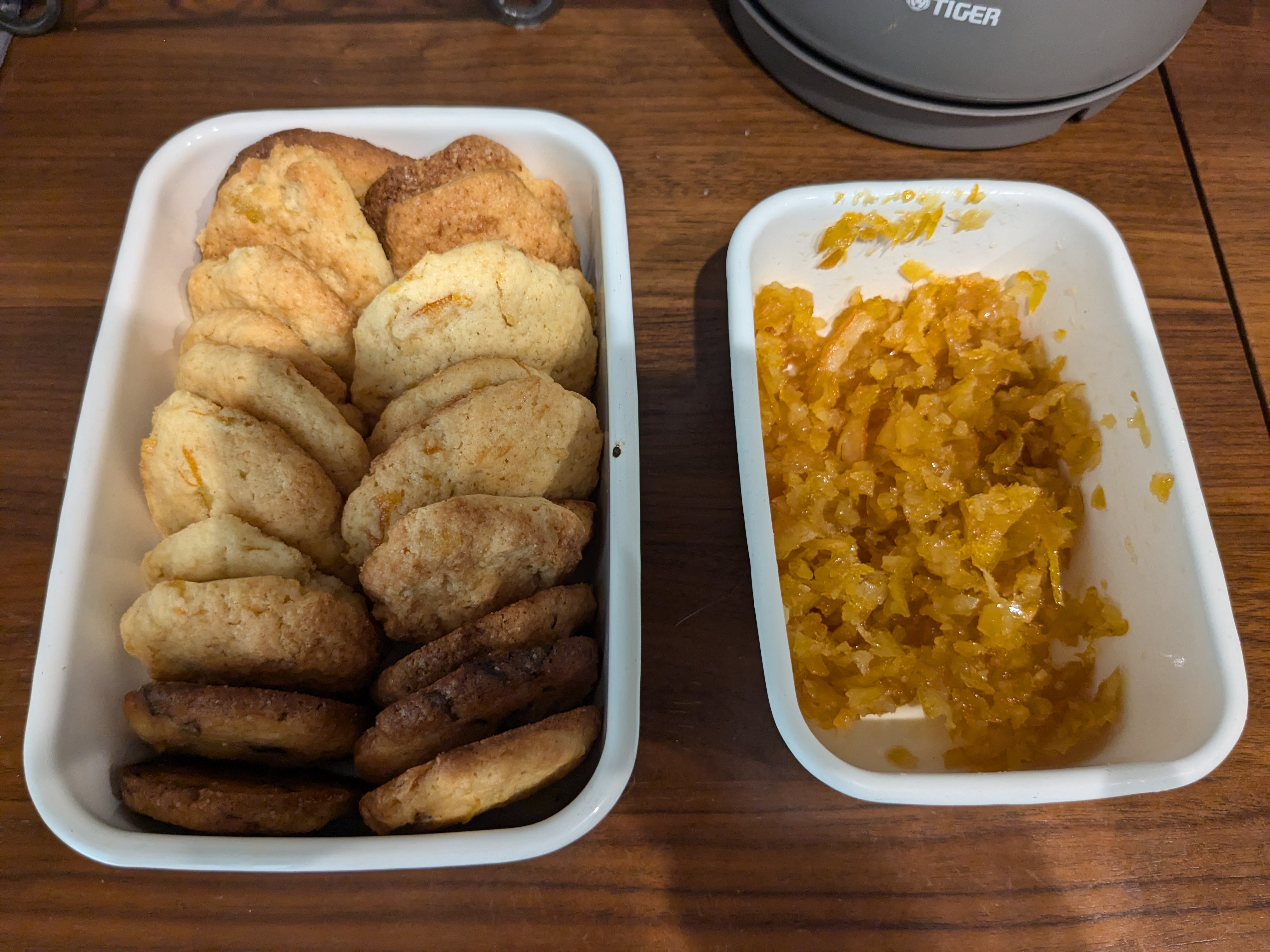 先日、国産のバレンシアオレンジを送って頂き、無農薬なので皮も大切にしたい✨そこで娘が皮を刻んでくれたので、ひと晩水につけてアク抜き。次の日マーマレードジャムを作ったら、ジャムではなくて、オレンジピールが出来上がりました😅沢山のオレンジピール🍊何かに入れたりできないかと考えていた所、今朝、思い立ってオレンジピールクッキー🍪を作ってみました🔥右側は、まだ残っているオレンジピール。チョコチップを加えたのもあります🍫アーモンドプードルも入っているレシピなので、ホロホロ食感のクッキーです🍪オレンジピールは結構入れたつもりでしたが、全然多すぎず、ちょうど良かったです✨マーマレード失敗した時は、ぜひぜひオススメです🍊