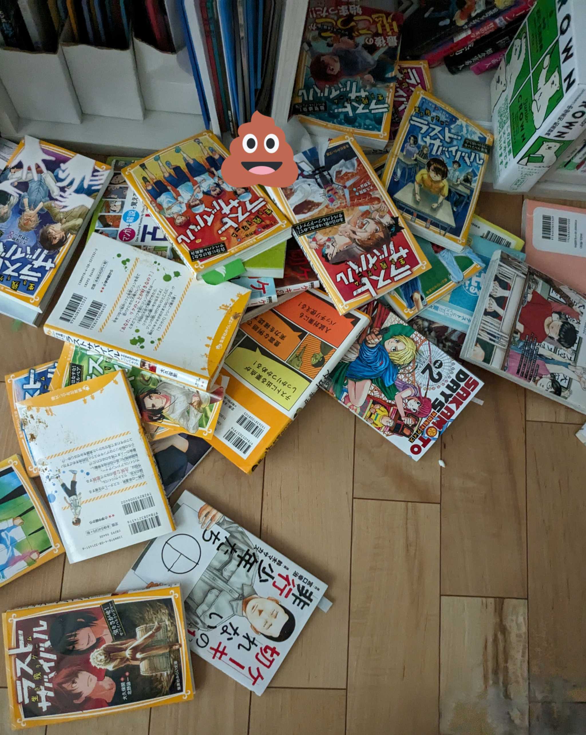 昨日の朝の出来事です。朝起きて、1階に降りて私が最初に目にした光景…娘がいつもより1本早い電車に乗ると言っていた朝、これからお弁当を作らなくては〜と思っていた私にはあまりにも地獄絵図(~O~;)スタンプで隠していますが、以下お食事中の方はご遠慮くださいm(_ _)m↓最近漫画や本が収まりきれず、本棚の手前にも並べていた私も、悪いんですが…わが家のチンチラくん(猫)のトイレ事情ですが、トイレを2つ用意しています。2つとも汚れると、お風呂の浴槽内でう○ちをする習性があります。またう○ちを溜め込むタイプで、出るときは少量の硬めう○ちを1 、2回して、その後大量の緩めう○ちを出す事が多いです(^_^;)まさにそのパターンで、2つのトイレには小さめの硬めう○ちがあり、浴室にはドアが閉まっていました。そこで本をカリカリ倒し、そこに催したんです(ノД`)シクシク汚れた本は泣く泣く廃棄で、娘が起きてくるまで形跡を無くし、じつはまだ娘に言えていません〜(;・∀・)もう一つトイレいるかな~[クーポン利用で10%OFF] 猫 トイレ ペット ネコのトイレハーフカバー P-NE-500-H 本体 しろ くろ 三毛 インテリア アイリス アイリスオーヤマ[ネコ ねこ 用品 オープン ハーフ ペットケア トイレ掃除 トイレ交換 ] あす楽[最大300円OFFクーポン有!暑さ対策][おまけ付!] 猫砂 紙 猫 流せる 猫 トイレ 砂 紙の猫砂 7L×6袋セット KMN-70N送料無料 猫砂 流せる 固まる 紙 猫砂 紙製 消臭 砂 猫砂 ネコ砂 ねこ砂 固まる 燃やせる トイレに流せる まとめ買い 猫砂 アイリスオーヤマ あす楽それとも本棚?【P15倍 7/11迄】 【完成品も選べる】 本棚 おしゃれ 大容量 6段 約 幅90 奥行30cm 180cm 収納棚 木製 a4 収納 スリム コミック シェルフ 漫画 マンガ ラック 雑誌 文庫本 収納ボックス 壁面収納 黒 白 子供部屋 ブックシェルフ cd dvd ホワイト ABRHM0370