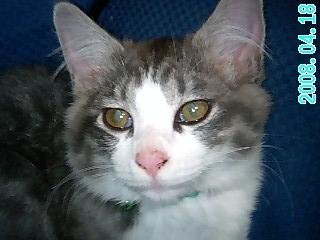 4月15日習字から戻った息子が「赤ちゃん猫 飼っていい?」と聞いてきた母の答えは もちろんNOでも 息子も諦めない「習字の先生困ってはんねん。できれば飼って欲しいって言ってる」は?習字の先生?なんで?くわしく聞いてみると習字の先生の知り合いが保護した仔猫がいるのだけれどその家の先住猫に攻撃されるので飼えないんだってで、習字の先生の家に引き取られたのだがここにも先住猫がいて噛み殺されそうになるほどの攻撃を受けてるらしいコスモを拾った時の事を思い出した雨の日に発泡スチロールに押し込められ捨てられていた骨と皮ばかりのガリガリ仔猫そんな事を思い出してしまうとその攻撃される仔猫が気になって気になって仕方がない習字の先生に電話して もう少し詳しく話を聞きとりあえず仔猫を見せてもらいに行ったそこには 私の想像していた 可哀想な仔猫ちゃんの姿はなかった不思議な毛並みの中猫新聞紙を丸めて作ったボールにじゃれて遊んでる〔でかいんじゃない?仔猫ちゃうやん〕とテンション下がった母だったけどその中猫がボールで遊んでいたと思ったら私の膝に乗り くつろいでまたボールで遊び 膝に乗り・・・・もう目尻下がっちゃいましたでも 問題はコスモ病気の事もあるし 前2軒で虐められてるし赤ちゃんでもないしなじめるのか?仲良くなれるのか?先生と話し合って取り合えず連れて帰り対面させる事にしたダメだったら すぐ返しますと約束して。家に連れて帰るとコスモは 怒ることも無く不思議なものを見るような感じでチビ猫に近づいていったフ~っ!!!!! 尻尾を膨らませ唸り威嚇したのはチビ猫だったそんなチビ猫に対してコスモはごろにゃんと言わんばかりに転がり お腹を見せているなんだこれ?立場が逆なんじゃないの?でもコスモが怒らないしきっとチビ猫は 前2軒で噛まれたりしたから警戒してるんだろうし・・・・・しばらく様子を見てみようか・・・・・あぁ・・でも、コスモが猫エイズだし 予防注射も受けられないのでまずは このチビ猫が病気を持ってないか病院に連れて行かなきゃ・・・なんだか すっかり飼う気になってしまってる母だって公園で3日間ぐらい鳴いてたんだって・・・やっと保護されたのに その家で 噛まれていじめられて次の家でも同じような目にあって・・・よく観察してみると人間には慣れてる でも餌やオモチャを見るとすかさず物陰に運んでいきう~と唸って警戒してる・・・心配しなくても誰も盗ったりしないよご飯も安心して食べていいよ大きい猫もキミをいじめないよ身体全身で警戒してるチビウチが キミにとって早く安らげる場所になればいいね・・・そしてチビ猫は 我が家の一員になったきれいな銀色の毛色なので息子が《銀河》と名づけた