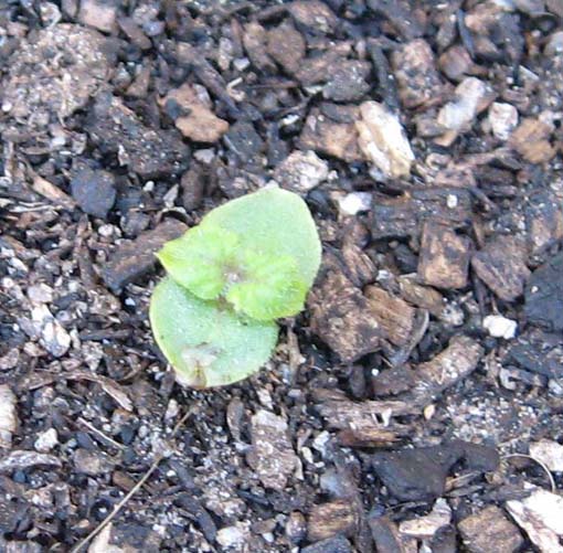 花壇に直接蒔きましたが、発芽率はよくありませんでした。ぽつぽつしか発芽していません。種が残っていたので今日、別な方法で蒔きました。写真は発芽が完了した青シソの苗です。