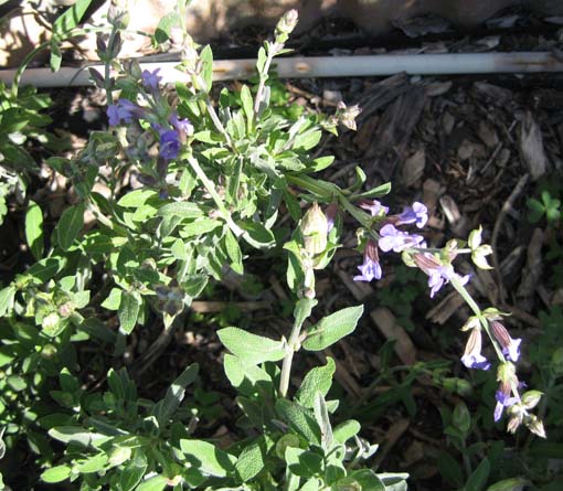 11月に入りました。日本の5月相当ですが、今年はいまひとつ気温が上っていません。いつもの年では裏庭の隅にあるセイジが気温が高すぎ、弱ってくる頃です。今年は依然として元気で、花が沢山残っています。株も大きくなりました。