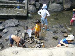 今日は3家族でバーベキュー 場所は岸和田のいよやかの郷って所で。川が前にあるけど子供だけで遊ばせてても大丈夫な幅と水量で安心。タープを張ってしてたのですがその下にいてもじりじりと暑い日差し、照り返し水遊びしてる子供は気持ちよさそう、足だけ浸かるだけでかなり涼しくなってた~火元のお父さん方お疲れ様です、うちの旦那はあまりしてなかったのですが・・・やたら子供に「おっちゃん、魚採って~、カニ採って~」と大人気でした後で気温が38度と聞いて納得その後どこに行こうかと考えてたのですが釣りに行くにも台風の影響ありそうだし、今日の暑さで体はだるだるであまり考えたくなかったのですが、友達が「うちにきてもいいよ~」と言ってくれたのでお言葉に甘えて泊まらせてもらうことに。この暑さでで寝てたら死んでたかも~相変わらずうちの娘とほぼ同じ歳の子の友達の子同士ほほえましく遊んでました。