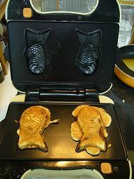 お昼ごはんをホットケーキにして~とお兄ちゃんが言うのでホットケーキを焼きました。お兄ちゃんはメイプルシロップとはちみつを半分ずつにかけるってメイプルかけ終ってからいいそしたらもう一つのにはちみつかけたら?って言っても、すねたまま、しばらくしてやっと機嫌が直ったけど、なんでこんなしょうもないことでいちいちすねるのかな~おっと話がそれました、でホットケーキミックス(うちはこれ)で鯛焼きを焼くことに先日買った鯛焼きプレートで ワッフルメーカーはこれ!これが結構難しい、入れすぎるとまわりにびろ~んと広がるし、あんこがはみ出たり。でも焼きあがってかりかりになったまわりをパキパキ外して出来上がり今回はノーマルに小豆缶を使ったけど好きなジャムとかクリーム入れても美味しそう。中にあんこを入れてないのも作って娘のおやつにしました。