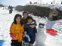 前日から泊まっているY家Hくん達とベルク余呉へ雪遊びに行きました。通勤割引を使っていく予定で9時までに高速に乗ったのに100キロ以下で降りるためのインターも調べて確認してたはずなのに旦那も私も見落としてしまった・・・(あ~もったいない)後ろを走ってたY号もあれ???と着いてきてくれたのです、ごめんね~雪が降ってなくて滑走可能なところが減ってきてたので滑走可能なゲレンデは混んでたみたい。天気もよかったしね。娘とHくんはスノーベルトでそりをしだしたのに2本ぐらい滑ったらもういい~って、たぶん混んでたしいやになったんやろうな~、Hくんが滑らないプラスキーを娘にさせてみたらあら上手に滑ってるわ、本人も面白い~ってお兄ちゃんが昨年スキーを履いたときはすぐにいや~ってやめてたのにね。 お兄ちゃんはお父さんとスキーでだいぶ上手に滑られるようになったみたいです。娘たちは穴を掘ってみたりそれなりに遊んでました。私は次女をベビーキャリーに乗せておんぶしてました。途中寝てましたけど。大阪から来てるY家は一足先に帰り私達は最後まで遊んでました。帰りは私の運転でした。