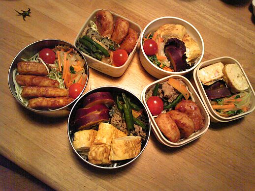 いやはやもう今夜もようやく弁当完成しました。(私は朝早く起きられないので、ほとんど夜に作ってしまいます。)パソオタくんが志望校に合格した喜びから一転?毎日弁当3個作成生活が始まりました。連日夜遅くまでかかっているので、週末になるとへとへとだしストレスも蓄積されてます。だのに手抜きをしないでほとんど手作りのそのワケは・・・・冷凍食品は高カロリー、なのにちょっぴりしか入っていない。惣菜は油っぽいかしょっぱすぎる。そして最大の理由はお金がもったいない!んだね家の冷蔵庫やそこら辺を探せばばーさまが買い込み過ぎた食材があるのでそれで大半をやりくりできるのです。しかも今夜は日曜日にじーさまが法事に行って来たお土産(と言うのだろうか)の中に鎮座していた「蟹缶」サマの卵焼き入りお弁当です。明日が楽しみ