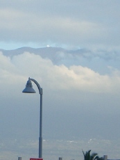 雲の切れ間から、昨日のハレアカラの山頂が見えた。