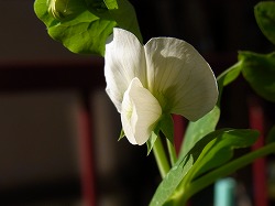 キヌサヤエンドウの花が咲いています。12月に苗を売っていたので買ってみました。これから寒くなっていくので上手く育つかと心配しましたが、ゆるゆると育ち、ついに花が咲きました。マメ科独特の花の形で藤やルピナスの花に形が似ています。春に咲く花だと思っていましたが、今頃から咲いて実が成るのでしょうか。