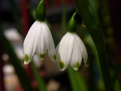 スズランスイセンはヒガンバナ科の花で、和名のオオマツユキソウ(大松雪草)の別名で、スノーフフレークといいます。白い花弁の先に緑の斑点があります。スズランの様な白い花が咲き、緑の斑点が可愛い可憐な花です。似たような花でスノードロップというのもあります。去年初めて球根を掘り上げて秋に植えましたが、春になり花が咲くかどうか気をもんでいたらやっと暖かくなって花が咲きました。植物は季節をよく知っています。出番が来れば花芽を伸ばし花が咲き、自己表現を演出します。植物にも体内時計があるのでしょうね。