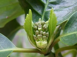 アオキは日本原産のミズキ科の常緑低木で、赤い楕円の実が付いているのを良く見かけます。大気汚染にも強く半日陰でもよく育ちます。雌雄異株なので芽株の近くに雄株が無いと実が成りません。これは雌株です。雌しべだけがあります。これは雄株です。雄しべが4本見えます。受粉するとこのように赤い実が成ります。実は翌年5月頃まで木についています。
