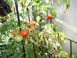 今年初めてミニトマトを植えてみました。花が咲き、実ができて少しずつ大きくなって、実の色が黄緑色から濃い緑、黄色ぽっくなってオレンジ色、そして赤色、最後に濃い赤色へと変化を楽しみました。思っていた以上に色づくのに日が掛りました。赤くなるのに40~50日くらい掛るそうですね、もっと早く赤くなると思っていました。葉が枯れ始めてようやくトマトも終わりです。収穫の数はさほど多くないですが、ときどき食卓に彩りを加えて獲る楽しみ、食べる楽しみを味わいました。家庭菜園っていいですね。プランター菜園の様なものしかできませんが、見るだけでなく食べる楽しみもあるのでいいもんだと思いました。