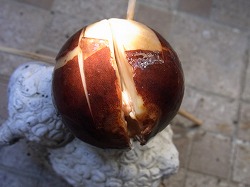 ホームセンターで買ってきた苗を植えて、思ったより早く花が咲き、実ができました。一つの実が大きくなり、その後咲いた花は次々と落ちてしまい、貴重な実となりました。熟してくると黄色くなってくるそうで、実が落ちてしまわないかと気をもんで見てきましたが、いつまでも青白い色から少し黄みがかってきたものの、一向に目安となる黄色くなってこないので、思い切って収穫することにしました。実の大きさは長さ約7センチ位で、昔できたカリンの実の大きさに似ています。アンデス地方が原産でニュージーランドでは一般的にみられるフルーツで、メロンと洋なしを併せたような味がするとのこと。収穫して数日置いて味わってみました。香りはほのかにメロンの様な匂いがします。口に入れると洋なしの様な食感で柔らかく果汁もあります。味はほのかな甘みとメロンの薄い味を想像してください。甘みの薄い若い柔らかいメロンといったところでしょうか。メロンと洋なしを併せたような味というのもうなずけます。実が一つできてその後の花が咲いても実がならない状態でしたが、実を採ってしまったので今後の花に期待です。新たな花芽も見えてきたので今一度実がなってほしいと思います。