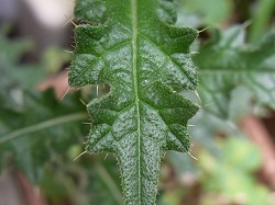 アザミはキク科の花で、スコットランドの国花だそうです。葉に鋭い棘があり、当たるととても痛いです。風で運ばれてきたのか、いつのまにか植木鉢の中ですくすくと育っています。花が咲き、タンポポのような綿毛の種ができて風に吹かれて飛んでいきます。種が飛んでしまった残骸と花です。見るからに力強い感じがする花で、耐寒性、耐暑性があり、放っておいても育つようで、ものぐさ園芸にピッタリのようです。