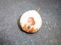 アボカドの種の水耕栽培を始めて約3カ月になります。1か月ほどで種の底面に亀裂が入り、根になる部分が見えてきたので根の伸長を待ちましたが一向に伸びてきません。3カ月近くなるのに根が伸びてこないので種を割ってみました。亀裂が全体に入っていたので、殆ど力を入れなくても綺麗に割れました。よく見ると、芽になる部分もはっきり分かります。しかしながら伸びてきません。どうもこの種は発芽しないように思えます。もうしばらく二つに割れた種を水に浸けて様子を見ます。7月の終わりにもう一つの種を貰ったので水に浸けています。この種は取り出してから1週間ほど経っていると言っていたので発芽の期待は薄いと思います。種が乾燥したり、アボカドを冷蔵庫に入れていたりすると発芽率が悪くなるそうです。