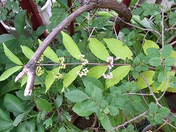 今年は昔のように花がたくさんついて、秋の気配と共に色づき始めた紫式部の実がすっかり紫色になりました。永らく花が咲かなくて、去年久しぶりに一粒だけ実ができて紫色になりました。今年は葉もよく伸びて花がたくさんついて根元に近い方から紫色に変っていきました。時間をかけて先の方まで全部紫色になりました。このように沢山実が色づくのを見るのは久しぶりです。もう来年も大丈夫でしょう。