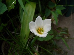 タマスダレはヒガンバナ科の花でゼフィランサスの仲間です。夏の終わりから秋にかけて咲き始めます。この花が咲き始めるころには朝夕の気温も下がり始め、虫の声もよく聞こえるようになり、秋の気配を感じるようになります。白い花弁にオレンジ色の雌しべの色のコントラストが綺麗です。年中細長い葉が出ていて生きているのかどうかわからないのですが、秋の気配と共に咲き始めます。雨の後一斉に咲き始めることからレインリリーとも呼ばれるそうです。意識して観察していないので雨の後咲き始めると言うのはよくわかりませんが、涼しさを感じるようになると咲きますね。季節の移ろいを感じます。
