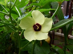 今年初めてオクラを育てています。不思議と背丈が伸びず、いつのまにか小さな花が咲いて実ができたりしています。実は筋が多く美味しく食べられる状況ではありません。何が原因でこのように成長が悪く美味しいオクラができないのでしょうか。オクラの綺麗な花と美味しい実を期待して苗を買ってきたのに・・・やっとまともな花が咲きました。花も普通に大きく、思っていた花を見ることができました。さてさて実は美味しいものができるでしょうか。