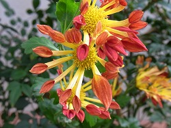 去年に苗を買った秋咲きスプレーマム。開花時期は11月頃ですが、咲き始めたのが12月に入ってから。年が明けて今も咲いています。旭風車という品種です。花弁が風車の羽根のようできれいです。色のバランスもいいですね。苗を買って手入れもせずに成り行き任せで置いていたら、蕾ができるのも遅く、他の菊が咲き始めてからでした。去年は色々な花の手入れをあまりしなかったので反省です。