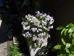 シバザクラが咲きました。5月の頃になると一面ピンクの花で埋まるシバザクラの開花がニュースでよく見られます。我が家のシバザクラは薄紫色です。今年は沢山の蕾が付いて見栄えのする鉢となりました。冬になると春にはまた咲くのだろうかと心配するほどに枯れていますが、3月になって暖かくなってくると思いだしたように葉が茂ってきます。