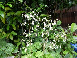 今年もユキノシタの花が咲きました。毎年春から初夏になると咲きますが、今年の花はやや小さく感じます。一つの花茎から多くの花が咲き、人型の花が風に揺れると凧が舞っているようです。ユキノシタは手入れも要らず、手が掛りません。放っておくとどんどん増えます。葉は食べることもできます。和食の料理店などでも出てきたりして、てんぷらにするとおいしいです。