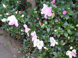 今年のツツジは例年よりも花が多く付きました。こんな色だったのかと思うほど。毎年花数が少なく、古株なので細々と咲いているなという印象です。白色やピンク、色の混ざったものなど、同じ株の中でも花の色が違います。遺伝子が影響しているのでしょうか。毎年ツツジグンバイが発生して葉が白くまだらになり、株の元気が無くなります。そのため花芽の生育も悪く、咲いても一輪とか二輪とか、散々な目に合っています。今年は葉も青く元気なようです。