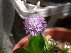 スカビオサはマツムシソウ科の多年草です。別名セイヨウマツムシソウと呼ばれます。風船のような花姿が可愛い花です。昨年苗を買って花が咲き冬を越しました。5月に入って花が動き出し、花芽が出てきましたが、一輪だけでした。その代わり去年より大きな花でした。秋口まで花が咲くようなので、まだこれから花が付くでしょうか。