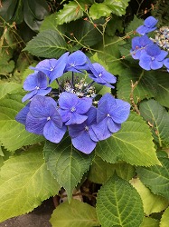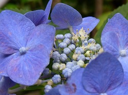 我が家には今2種類の紫陽花があります。一つは古くからあるガクアジサイ。もう一つはヤマアジサイです。ヤマアジサイは2年前に素朴な咲き方が気に入って鉢植えを買ってきました。紫陽花と言えば大きな手鞠の様な花をイメージします。花の色は土のPHに左右され、酸性土であれば青い、アルカリ土であれば赤い色になります。ガクアジサイは外側に花弁のような花に見える装飾花と内側にある両性花からなっています。花弁のように見えるのは萼です。アジサイの原産はガクアジサイで日本だそうで、ヨーローッパへ渡り品種改良されて戻ってきたのが普通によくみられる西洋アジサイで、殆ど全てが装飾花となっています。我が家のガクアジサイの花の色は青色ですが、花ざかりの頃はとっても深い青色で大変綺麗です。もう一つのヤマアジサイはガクアジサイに似ています。両性花と装飾花からなっていますがガクアジサイに比べると装飾花の花軸が長いのが特徴です。花全体を見たときに花軸が長いせいか素朴さを感じます。