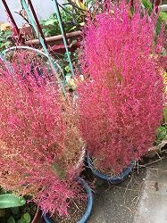 コキアの木が赤く染まりました。少しピンクがかっていますが奇麗な赤色です。別名ほうき草と言って、この草からほうきを作ったりします。刈り取って乾燥して草ぼうきを作ります。実は「とんぶり」といって食用になります。数が揃って紅葉すれば見ごたえがあります。