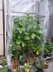 暑い夏も終わりいよいよマザーリーフの冬越し対策を始めなければなりません。冬の間は家の中に入れるといいのですが、置く場所も無いので戸外で冬越しをします。ビニールハウスを作って入れますが、小さなものは鉢ごとくるんで保温します。2年間使用したビニールハウスが劣化してボロボロになったので、今年は梱包用のプチプチで囲いをしました。この資材は小さな鉢だと、鉢ごとくるんでおけば保温効果もあって大いに役立ちます。正面の空いている部分は、もう少し寒くなると同じ資材で簾のように取り付けてふさぎます。洗濯バサミで取り付けておけば、暖かい日には取り外したり、隙間を空けたり自由自在です。この温室には6鉢のマザーリーフが入っています。あと3鉢は入らないので保温対策をしなければなりません。全部で9鉢になりますが、この春には弱ってしまって成長が止まり、全滅の危機にありました。下部の方の茎を切って植えなおすという荒治療を全ての鉢にやってみました。それが効果があったのか、夏に持ち直して背丈も伸びて花芽が期待できるほどに回復しました。冬越しが上手く出来たらまた花が期待できそうです。
