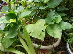 今年の夏にサツマイモの切れ端を置いていたら芽が伸びてきました。興味本位に面白半分、この切れ端を植えたらサツマイモが獲れるかなと植木鉢に植えてみました。しばらくすると蔓が伸びてきて大きな葉が茂ってきました。しめしめ、根が付いた、後は秋になって収穫を待つばかり。サツマイモのことを調べてみると、5月~6月頃に蔓を植えるとありました。イモの切れ端を植えるという記事は見当たりません。また時期も少し遅いようです。はたしてサツマイモは収穫できるのか。植えたイモの蔓がしっかり伸びてきたので、先の方を切って空いていたプランターに植えてみました。これならイモが収穫できるかなと。10月の初めに切れ端を植えた鉢の葉が黄色くなり始めたので掘り起こしてみました。イモから根が沢山伸びています。そいて現れたのがまさしくサツマイモ。細くて小さなサツマイモ。ガリガリの細身のイモでした。やはり時期も遅く、切れ端からはイモは成り難いのか。蔓を植えたプランターの方はなおかつ時期も遅いのでもう少し待つことに。やがて葉も黄色くなってきたので、あきらめの境地で掘り起こしてみたところ。小さいなりにもサツマイモが現れました。前のよりも太くてイモらしいです。小さくてもサツマイモです。無事晩御飯のみそ汁の具になりました。ちゃんと甘みがありました。今年の実験は成功です。今度はもっとまともに育ててみたいですね。