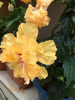 今年の夏の初めにハイビスカスの株を二つ買いました。ハイビスカスを育てるのは初めてです。大きな花が魅力的です。一つには花芽が少しついていましたが、もう一つには花芽が見えませんでした。植木鉢に植え替えてしばらくすると花芽も大きくなり、花芽が見えなかった鉢にも花芽が見え始めました。ついに花が咲きました。思ってたイメージと花が違いました。真ん中にもう一段花があります。そして黄色い花。ハイビスカスは赤い花をイメージしていましたが、黄色い花もあるのですね。奇麗な花が咲いたので、気分を良くしてまた違う店で株を二つ買いました。こちらは花芽も見えていたので楽しみです。こちらもついに花が咲きました。これもまた黄色。しかし花の形はよく見るハイビスカスの花です。花の形が2種類あるのがわかりました。そして色も黄色があることを。赤いイメージしか持っていなかったのでちょっと意外でした。四つの鉢はその後も次々と花芽が付いてきて、この夏はハイビスカスを満喫しています。