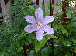 久しぶりにクレマチスの苗を買ってきて植えました。やがて成長した枝の先の方で一輪の花が咲きました。他に花芽が二つほどありましたが、いずれも花が咲かずに終わってしまいました。もう少し花を期待したのに残念です。クレマチスは「旧枝咲き」「新枝咲き」「新旧枝咲き」という三タイプの花があるそうで、それぞれ剪定のタイミング、方法があるそうです。我が家の花はどのタイプなのか良くわかりません。今年育った苗を買ってきて花が付いたので「新枝咲き」かと考えますがどうでしょう。剪定の仕方を間違えると来年の花が見れないかもわかりません。とりあえず、初夏の剪定方法なるものを試してみるか。