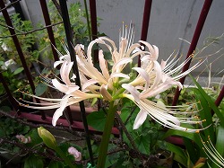 台風一過、午後から太陽も顔を出し、いい天気になってきました。台風の接近を待つかのようにリコリスが咲き始めました。まだ暑い日もありますが花にとっては秋になっているようですね。雨風に負けないように細長い茎を支えています。球根を植え替えて3年目。球根も落ち着いたのか、今年は沢山の花芽が伸びています。リコリスが咲くと秋の到来です。