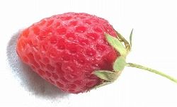 いつもナメクジに先に食べられる苺。今年も被害にあいました。数少ない花が付き、数個の苺が赤くなりました。熟したころを見計らい収穫しようとしますが、いつもナメクジが先に試食してしまいます。今年は一粒だけ収穫できました。貴重な苺です。食べてみるとほんのり甘く適度な酸味があり美味しかったです。