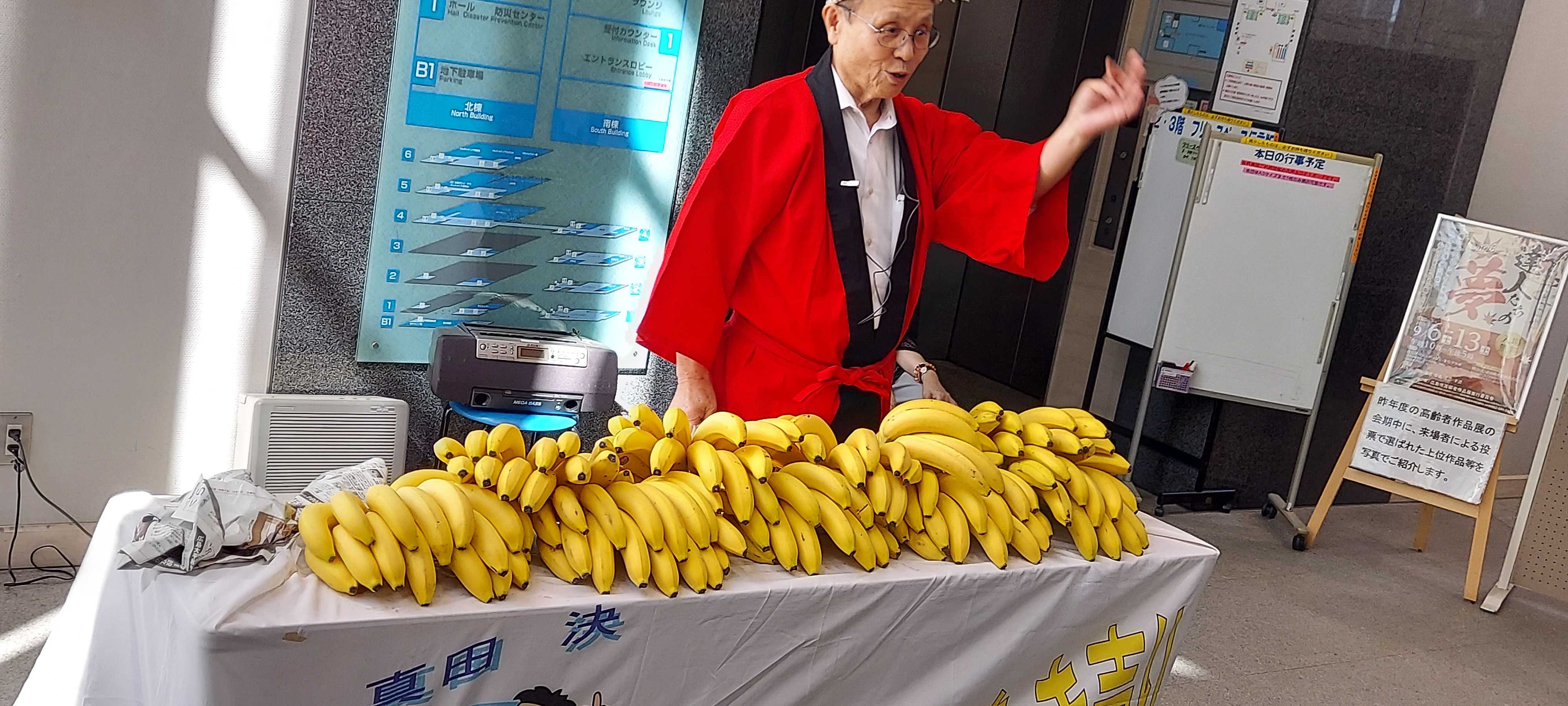 作家でエッセイストの浅見帆帆子氏のお話です。私が日常で大切にしていることの一つに、「思いついたら48時間以内に行動する」というのがあります。例えば、誰かと話している時に、突然どこかの場所が浮かんだとするじゃないですか。でも普通は48時間以内に行けないですよね。その場合は、その場所について調べるとか人に話すとか、裾野のことでいいので48時間以内に手をつけると、それがどんどん展開していくんですよ。これは何度も実験済みで、なぜか2日を過ぎてしまうと、そこで動いてもあまり面白い展開や引き寄せが起こらないんですよね。(人間学を学ぶ月刊誌 致知8月号 62ページ)浅見氏は、楽しい事やよいことを思いついたら、経済的、時間的に許される範囲で、すぐに行動してみることを勧めておられます。好奇心や興味や関心が湧いてきたら、すぐにその感情に沿って行動することが肝心です。一旦行動に移すと、それが呼び水となって、行動に弾みがついてくる。そして新しい発見や気づき、問題点や課題、改善点や改良点、新たなアイデアなどが生まれてきます。楽しみや感動に溢れた生活に変わっていきます。精神状態も弛緩状態から緊張状態に変わり、積極的、生産的、建設的、創造的な生活に変化してきます。普通は今すぐは無理だから、それをメモして置き、いずれお金が貯まり、時間的な余裕が生まれた時に取り掛かろうと考えることが多い。すると時間の経過とともに、その時にいくら素晴らしいことを思いついても、一山もふた山も越えているうちに感情の劣化現象が起きて来たのだと考えられます。市営プールで最初にプールに入る時、こんな冷たい水温で泳ぐのは耐えられないと思っても、しばらくすればすぐに慣れてしまい、最初の感覚は感じなくなってしまいます。いくら妙案を思いついても、その時、その場での意欲や関心に基づいた行動ではないために、やる気や意欲がでてこないということだと思います。感情は生鮮食品と同じ「生もの」だと思います。「生もの」賞味期間内に食べないと、処分することになります。時間の経過とともに、感情が劣化して使い物にならなくなる場合もあることを頭の片隅に入れておきたいものです。バナナのたたき売りイベントに行ってきました。運よくひと房100円でゲットしました。