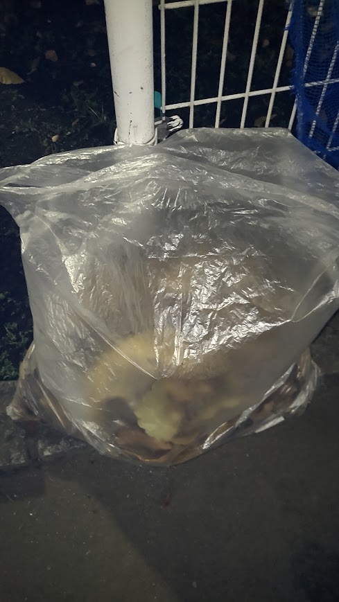 出勤時と退勤時。道の逆サイドを歩くので帰る時にずっと落ちている缶やペットボトル。帰る時には人通りが多くて拾うのが恥ずかしいので、朝に袋を用意して、出勤時に通るサイドを変えてこっそりゴミ拾い。10個くらい缶やペットボトルを回収夜は近所で気になっていた金属ゴミ・陶器・割れ物ゴミの放置系を回収。夜中にゴミ拾っているとなんか悪いことをしている気になってしまう 翌日回収の集積所に持って行った最後にはいつもの公園周りの枯れ葉や燃えるゴミをまとめてみた。日本には13万8698ほどの公園があるそうなので、みなさんご担当の公園ゲットしてくださいませ~