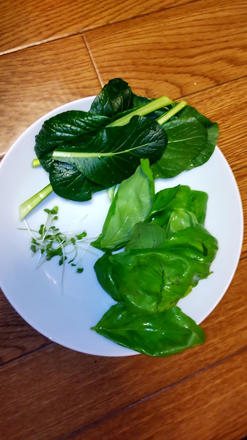 雨で外に出たくなかったので、本日はベランダ産野菜とと余り物食材を組み合わせての食事 完成品は出せませんバジルは購入したものを間引いただけですが、根っこが出てきているのでベランダ産に切り替え出来るかな?長く収穫できるように間引き方法を学ばないと