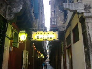 ヴェネツィアはイタリアで最も物価が高いです。普通のレストランで食事をしても高いですが私たちが宿泊したホテルのレストランは我が家の経済事情からは考えられないくらい高く朝食すら食べに行きませんでした^^;朝食バイキングが一人約5千円。二人だと当然一万円。朝食に一万円払えるほど裕福ではありませんそんなわけで、外のレストランはあちこち行きました現地で調達した英語のガイドブックから(ボーフムにはなかった・・・)安くて美味しい(と思われる)お店をダーが探してくれましたその中からおすすめのお店を何軒か・・・【Trattoria alle Madonna】怪しげな路地に怪しげな看板・・・でも店内は明るく、店員さんもアットホームな雰囲気ボーフムでの生活で魚介類に飢えていた私たちは魚介類ばかりを食べました(笑) イカ墨のパスタと魚介のミックスフライが美味しかったです【Al Bacareto】このお店もまた人通りの少ない場所にありました。テラス席に座って昼からボトルワインラベルにお店の名前が貼ってありました アンチョビのパスタとボンゴレを注文してダーとシェアして食べたのですがここのアンチョビのパスタは絶品です滞在中にもう一度食べたかった・・・【Ristorante all'Angelo】このお店は店員がノロくてイラッとしてしまったのですがイカ墨のリゾットの美味しさがそれを遥かに上回っていたので紹介しないわけにはいかない・・・という感じ^^;本当に美味しかったです(写真を撮り忘れて食べちゃったんですけど・・・)うちの夫婦は基本的にデザートは食べないのですがやはり本場のティラミスを食べてみたいと思い、注文してみました笑っちゃうくらい切り分け方がめちゃくちゃですでもボリュームがあってしっとりしていて美味しかったです【Un Mondo di Vino】このお店は他で食事をしてボトルワインを飲んだあとダーのたっての希望で訪れた立ち飲みのようなワインバーこのお店も人通りの少ない狭い路地にあって地元の人たちがワイングラスを片手に路地のあちこちでワインとおしゃべりを楽しんでいましたダーも私もこのお店がすっかり気に入ったのですが私はホテルの送迎ボートの時間が気になり(A型の心配性^^;)ゆっくり飲めなくて残念でした私たちがお店を出る頃にはお客さん(常連さん?)が数人だけ・・・店長さんも店員さんもとても気さくで常連さんと一緒になってワインを飲んでいました帰る時に「チャオ チャオ~」と陽気に手を振ってくれた店長さん(若い女性)の笑顔が脳裏に焼きついています。