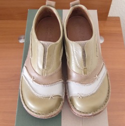 ドイツは革製品の質が良いようで革のお財布やバッグ、靴などがたくさん売られています。ダーが靴を買って帰りたいというので昨日はダーの靴を買いにお出かけしました目をつけていたお店が3軒あるらしく、順に見て回りました。私がこちらで散策用に履いていた靴もかなりくたびれてダーに「みすぼらしいから捨てていったら」と言われていたので私もダーと一緒に物色していました3軒目のお店でかわいい靴を発見実際は写真よりも暗い感じのうぐいす色なのですが履き心地もよく、歩きやすそうですステッチの感じも私好みですっかり気に入って購入しましたお気に入りの一足を手に入れて超ご機嫌な私ダーは「これ」という靴が見つからないらしく諦め半分で通りすがりのお店に入りました。そこで、私は見てはいけないものを見てしまいました・・・ついさっき購入したばかりの靴の色違いがショーウインドウで半額になっているではありませんか浮かれ気分が一気に沈みました~知らぬが仏・・・そういうことって身近にたくさんあるのかもしれませんね「同じ色はなかったに違いない」「私のサイズはなかったかも」と自分に言い聞かせ、なんとか立ち直りました・・・ ドイツでお買い物をする方へ 私が購入したお店はそのメーカーの専門店でした。専門店ではディスカウント率が低く、定価販売が多い気がします。様々なメーカーの商品を取り扱っている量販店で購入されることを強くおすすめします~