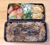 十五夜にお月見をした人は明日の十三夜もぜひお月見をしてください十三夜のお月見は日本独特の風習なのだそうですが十五夜と十三夜のどちらか一方のお月見だけをするのは「片見月」として良くないとされているとか・・・というわけで、十五夜にお月見をしなかった人は見ないでください十五夜に次いで美しい月なのだそうでお天気も良さそうだし楽しみです 今日はダーだけお弁当焼き鮭、オクラのおかか青じそ和え、さつまいもの煮物、チーズとドライパセリのぺたんこオムレツ、ウインナーサラダ菜、ミニトマト、ブロッコリー完全にお年寄り弁当です^^;