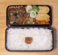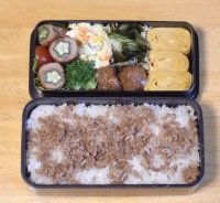 ある日の朝、お弁当を作っている私のところへ寝ぼけまなこのダーが来て一言。。。夢の中で飛行機に乗り遅れそうになったそのまま起きるのかと思いきやトイレへ行ってからまた寝室へ・・・また寝るのうん・・・急がないと乗り遅れるから夢の中で走って乗るつもりなんだ~気持ちは分かるかも・・・ 豚肉の生姜焼き、茄子とキャベツの炒め物、卵焼き、ブロッコリーの茎と人参(コンソメ味)、ウインナー、サラダ菜、プチトマト、ブロッコリー昨日、牛肉はすべて食べきったのですが豚肉が少しだけ余ったので酒、醤油、生姜で漬け込んで生姜焼きに。茄子とキャベツも昨日の残りです