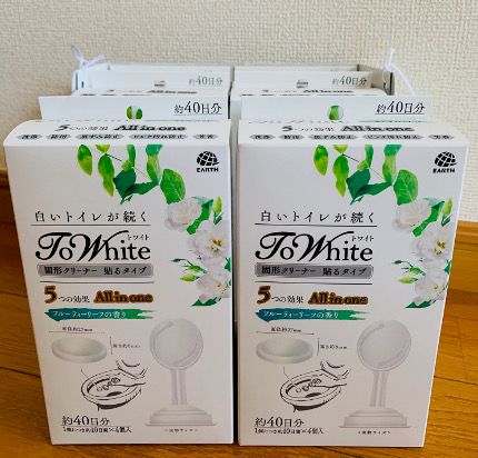 トイレにスタンプするタイプのクリーナーを使ってみたことはありますかモラタメさんのタメせる商品として登場したこちらの商品を購入してみました。アース製薬『ToWhiteトワイト 固形クリーナー貼るタイプ フルーティーリーフの香り』これまでもスタンプタイプを使っていましたが容器本体を何度も使い回すものでした。こちらの商品は一回ずつの使いきりで・・・ポンッとスタンプしたらポイッと捨てられて衛生的効果は10日ほど続くらしく、1箱40日分になっています。このように軽く押し付けてスタンプします。簡単です固形のクリーナーは真っ白で目立たないし香りも良くてお気に入りなのですがうちのトイレの水流が強いのかスタンプした場所が悪かったのか2箱(8個)のうち3個くらいは10日どころか2~3回流しただけで剥がれました先日スタンプした分はなんともないのでスタンプする位置によるのかもしれません。全部で6箱あるので、コツを覚えようと思います