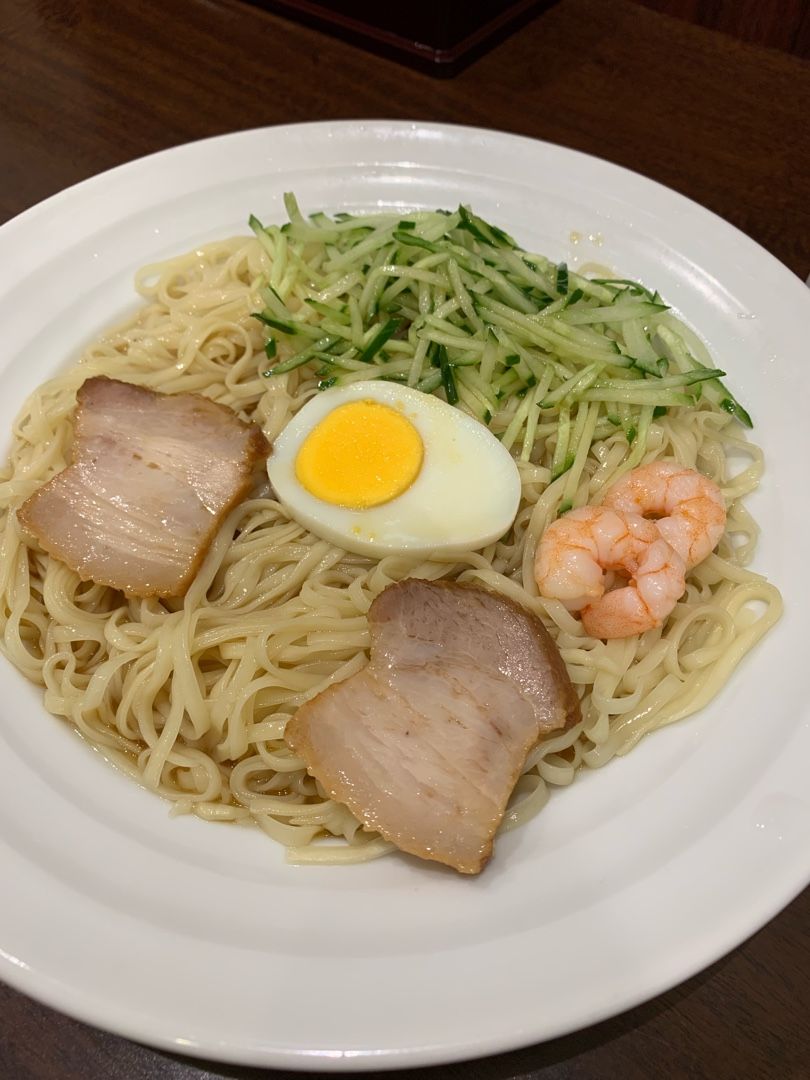 昨日1時間ちょっと並んで食べた『珍来軒』の呉冷麺。 具が少なめの冷やし中華のように見えますが、スープも麺も(特に麺が)違います。 平打ち麺で、モチモチ&ツルツルしています。 美味しい!! スープは少しピリ辛で、さらに酢からしをかけて辛さをアップしてみたり、黒酢でマイルドにしてみたり、味変も楽しめました♪ また食べたいですが、1時間並ぶのはちょっと考えちゃうかも^^; 『鶴瓶の家族に乾杯』で取り上げられたばかりなので、いつも以上に混んでいた?? 次回は落ち着いていますように☆