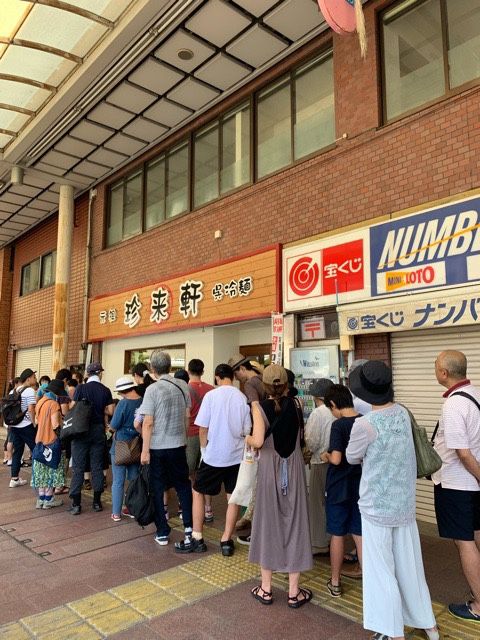 ダーの実家(広島)に帰省しています。 呉冷麺の人気店『珍来軒』に来てみたら・・・ 予想を上回る大行列(@_@) 次にいつ来られるか分からないので並んでます^^; 今日の広島の最高気温は36℃予想で千葉より暑い(>_