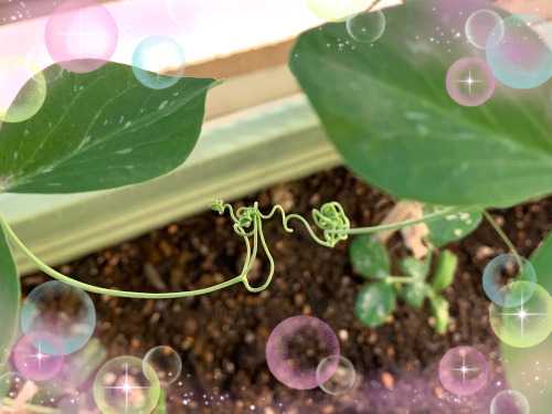 支柱に絡みつかずに隣の子と手を繋いでいる蔓が…