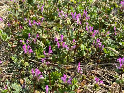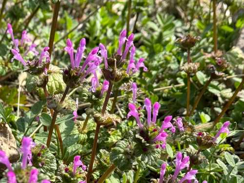 雑木林の斜面の、枝やら枯れ葉やらの間から
