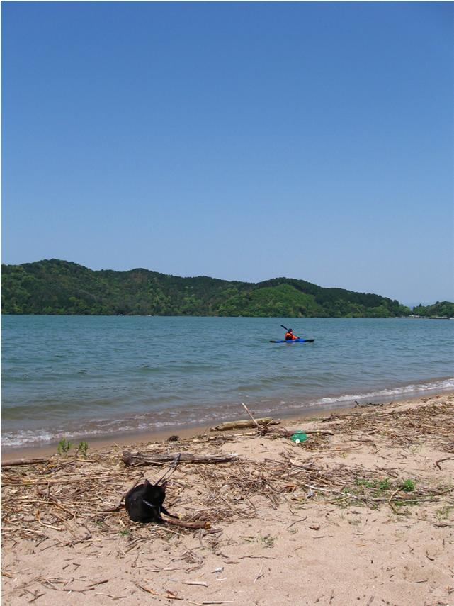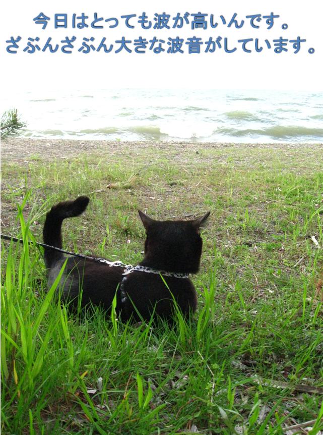 初めてこんな広々として 押し寄せる波を見て こわごわのチャンです。