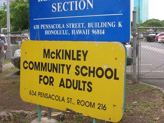 アダルトスクールはここにも。アダルトの為の(18歳以上~)学校。とはいっても、平均年齢はおそらく50歳?と思うほど、ご年配の方が多いようです。中には大学生?くらいの人もいますけど・・・いくつになっても勉強は続ける!というアメリカの人達。とっても精力的に活動してます。校舎はこんな感じ。教室は20室以上あってそれぞれのレベルや専攻にあわせて授業が朝、昼、夜のシフトで行われています。これなら、子供の世話の間に、仕事が終わってから、仕事の前にと、スケジュールを調整しやすいようになっています。でも、どこに行っても最初はテスト、で、クラス分けしてからまたテスト。学期の始まり終わりにテスト。テストでレベルを見定めるのだが、このテスト使い回しです。何度か受けていると、見たことのある問題がいっぱい出てきます。はたしてこれで本当に見定めきれているのかどうかは不安ですが・・・Aの学校では5レベル、Bの学校では3レベル、Cの学校では・・・といった感じになってそれぞれの学校はまったく連動していません。その分たくさん勉強できるのですが・・・生徒の中にはテストをわざと悪い点数になるよう回答する人もいて、同じクラスに残りたいということなのでしょうか?英語が出来るようになったかならないかは自分が一番良くわかっているので、個人個人楽しく勉強が出来ればいいってことですかね。でも、ここの生徒は韓国、中国系の方が多いように感じます。先生もアメリカ人、日系、韓国と色々なようです。こんな人達見てたら先生って仕事に少し興味わいてきました!