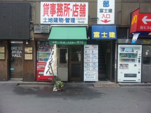 ドアの幅が50cm程しかなく、一瞬不動産屋の一部かと思ってしまいます。冷やしそば340円+大盛140円。麺はゴワゴワでモップ食ってるみたいですw立ち食いそばに関してはこちらのブログがなかなかなんで、良かったらどうぞ。ふろーすれ1