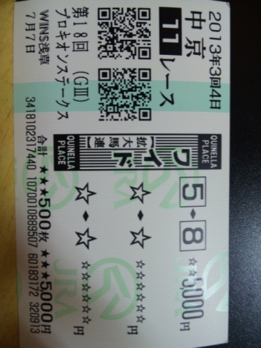 東京駅から京葉線に乗って中山競馬場へ。まずは東京駅で「牛たん 利久」を見つけ並ぶ。うーん、なんかめんどくさくなって別の店へ。カツ丼とざるそば。東京から船橋法典へは30分くらい。・・・府中本町で駅員に起こされる。東京から府中本町は京葉線と武蔵野線で1時間45分。1時間15分寝過ごした。別に府中で馬券買ってもいいんだが、眠いんで東京行きに乗り込む。1時間15分かけて中山へ。この日はなかなかの昼寝日和。暑くも無く、寒くも無く。巴賞は3Bのワンツーだったね。帰ろふろーすれ1
